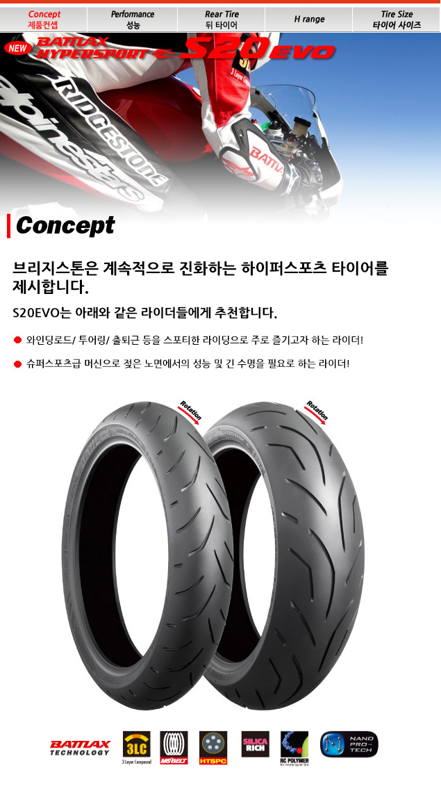 250~400cc 프리미엄 하이그립 타이어 BATTLAX S20EVO